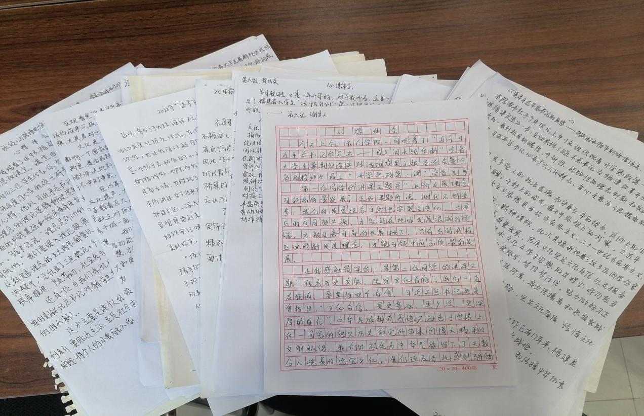 为深入贯彻落实新时代学校思想政治工作要求,9月18日上午,太阳成集团tyc41183读书社在学院会议室组织全体社员观看“追寻习近平总书记的足迹--闽山闽水物华新”,全省大学生暑期社会实践活动成果汇报交流会暨全省高校师生同上“开学思政第一课”直播活动,读书社全体社员认真观看,做好笔记,撰写心得体会。