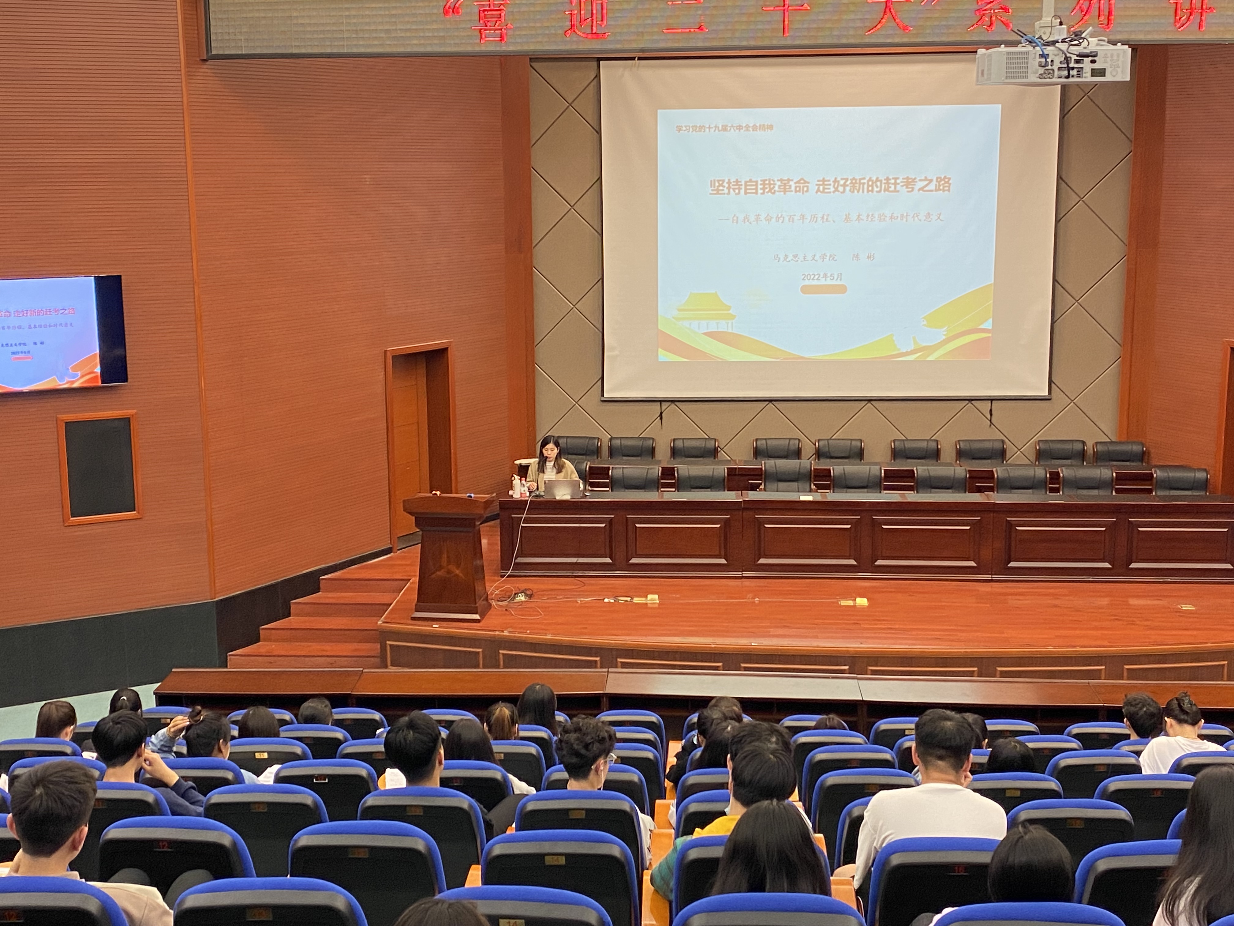 5月24日,太阳成集团tyc41183习近平新时代中国特色社会主义思想读书社在学术报告厅开展“中国共产党自我革命的百年探索和时代价值”主题讲座,马克思主义学院陈彬老师应邀作此次报告,学院读书社指导老师及全体社员参加了本次讲座。