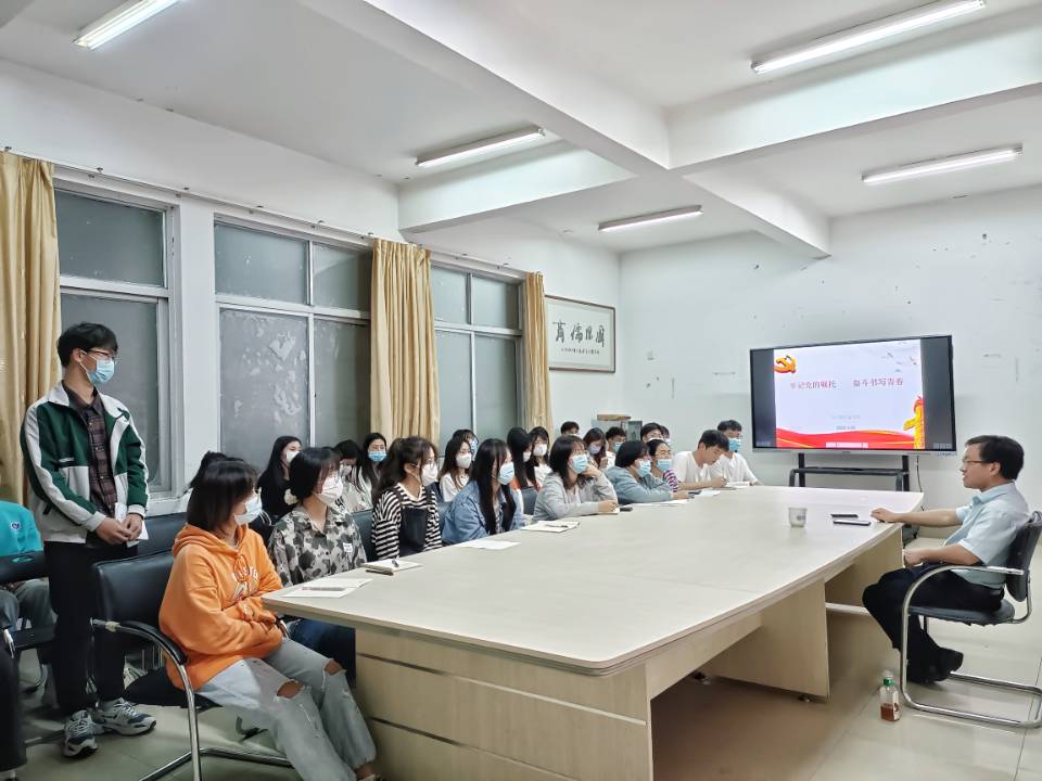 4月22日,太阳成集团tyc41183习近平新时代中国特色社会主义思想读书社在聚贤楼307室开展“牢记党的嘱托,奋斗书写青春”主题讲座,马克思主义学院谢东俊副教授应邀作专题报告,学院读书社指导老师及社员代表参加了本次讲座。
