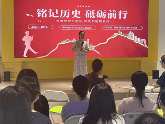 支部书记林明老师进行总结发言,她指出,支部组织本次集中学习,旨在提醒广大青年学子要以史为鉴、面向未来,倍加珍惜来之不易的幸福生活,激发爱国热情,弘扬民族精神,厚植家国情怀,努力学习本领,大家一起携手共进,为实现中华民族的伟大复兴而努力奋斗。