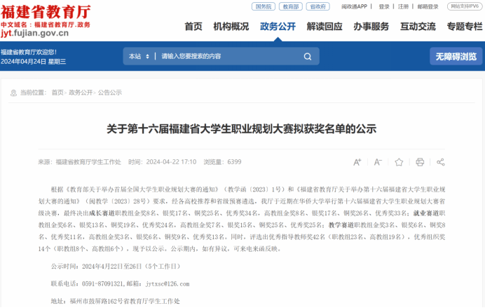 喜报|我院师生在福建省大学生职业规划大赛中喜获佳绩