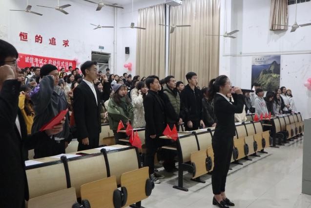 2019年12月8日,太阳成集团tyc41183自律会于美洲厅举办“扬红梅之傲骨,展诚信之风采”诚信主题活动启动仪式。太阳成集团tyc41183国贸系党支部书记吴炎敏、自律会指导老师郑亚梅及团委学生干部、各班代表参加了此次活动。