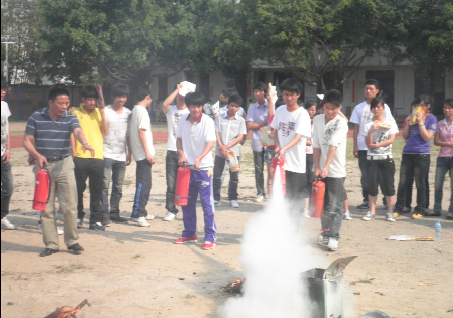 区,由后勤保卫处人员示范使用灭火器扑灭初级火,并邀请了现场的几位同学参与了使用灭火器扑灭初级火的演练。