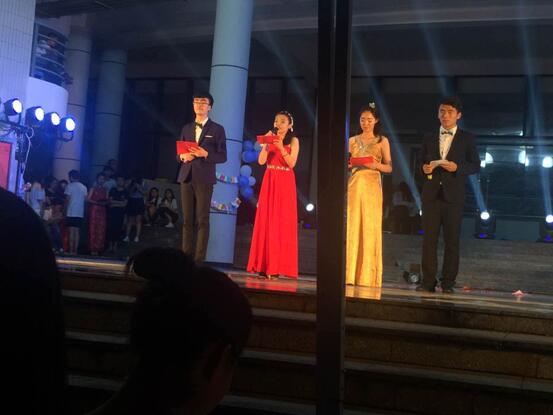 也许是上天也在这个季节里感伤,在这里我们即将别离的时刻不舍,原本计划在青春广场举办的送老晚会,由于一场大雨而匆匆搬离至活动中心门口举办。本次晚会分成三大部分,分别是成长篇、风雨篇、茁壮篇。在所有人的努力下,晚上八点,晚会正式开始,惊叹不已的比基尼开场秀瞬间让原本因雨天带来的气氛一扫而去,现场的气氛迅速升温。狭小的舞台,并不足以让我们为之努力的演出而失去意义,有趣搞笑的王牌对王牌小人舞表演;舞台剧歌曲串烧唱出了多少回忆;《你的青春是我的流年》朗诵流露出淡淡离愁的思绪;最后《追梦的青春》影子舞,在视觉上的震撼与内心深处的被唤醒的梦想一下全部展现。台下一阵阵掌声,一声声欢呼呐喊声,让我们觉得所付出的一切都是那么的值得。一句学长学姐毕业快乐,一句经贸有你更加完美,说进了多少人的心里,感伤了多少不舍。