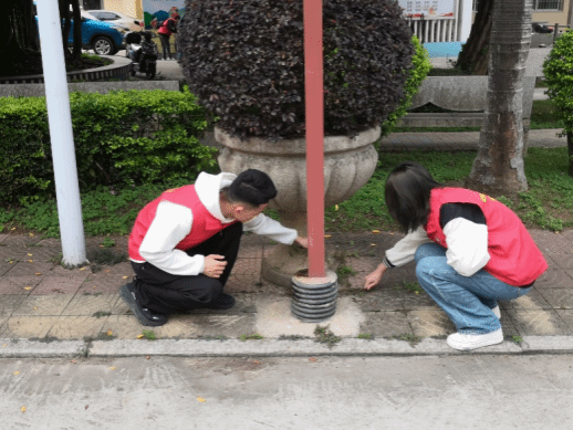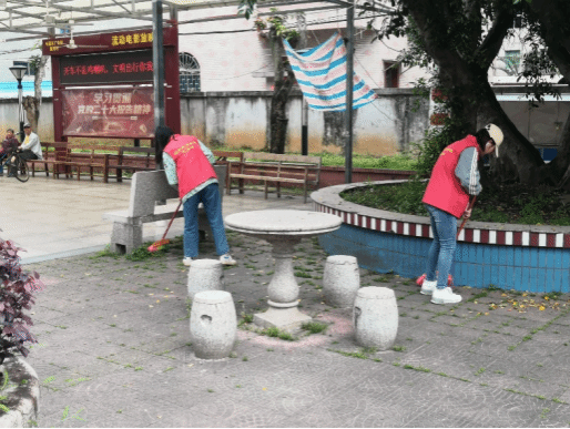 志愿者清扫院子