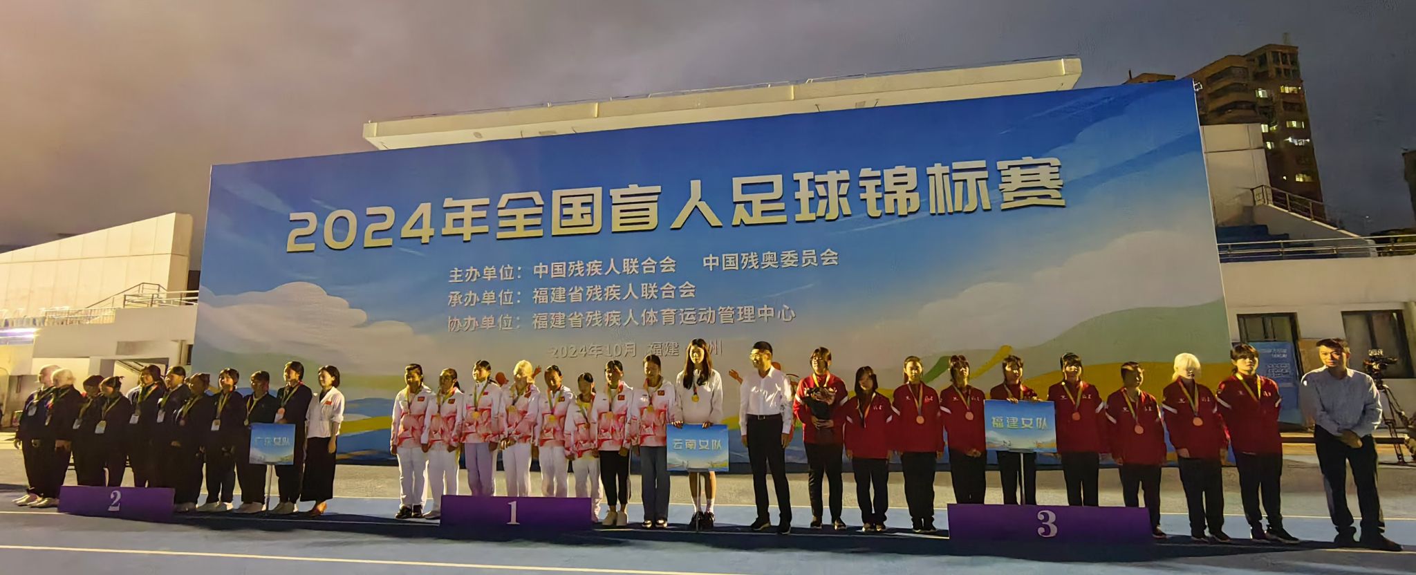 10月22日-28日,2024年全国盲人足球锦标赛在福建省残疾人体育运动管理中心隆重举办。我校李进老师被福建省残联聘请为福建省女子盲人足球队主教练,我院2023级国际经济与贸易2班江雅彬同学被选为守门员。