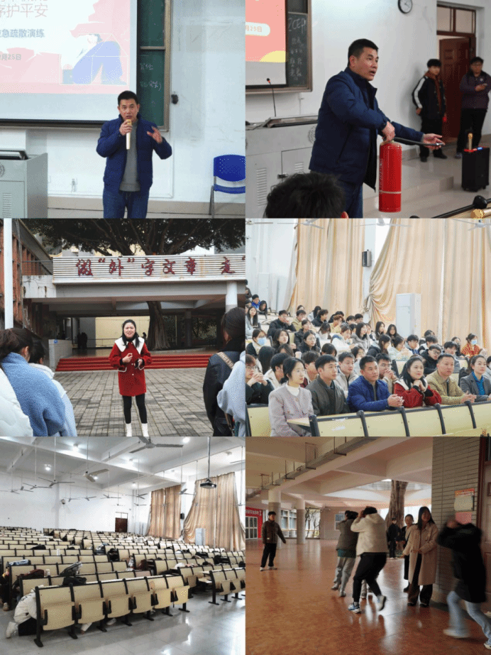 演练于下午13时开始,首先模拟了地震避险场景。地震警报响起,师生迅速进入应急状态,完成避险动作后,按照预定路线快速撤离至指定避险区。随后,进行了消防知识培训和应急疏散演练。周建成讲解了校园火灾预防知识和火场自救方法,并现场演示了灭火器使用方法。消防警报响起后,师生们迅速、有序地沿着逃生路线撤离至广场开阔地带。各班级辅导员及时清点人数,确保每位学生安全到达集合点。学院党委副书记方霞对演练进行了总结,高度评价了师生们的表现,并强调了安全工作的重要性。