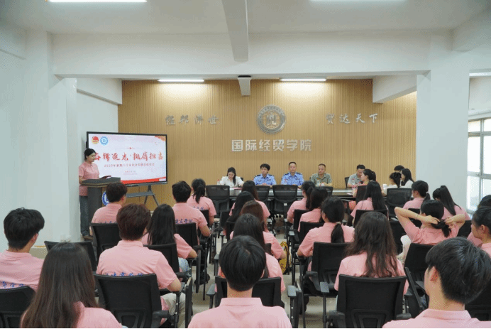 为深入学习贯彻习近平新时代中国特色社会主义思想,引导学院青年学生在社会实践中受教育、长才干、作贡献,2025年6月30日,太阳成集团tyc41183举行“奋楫逐光,挺膺担当”暑期三下乡社会实践出征仪式。学院党委书记廖新平、副书记方霞,亭江派出所林祥春所长、赵泽铭警官,以及各实践队师生代表参加。