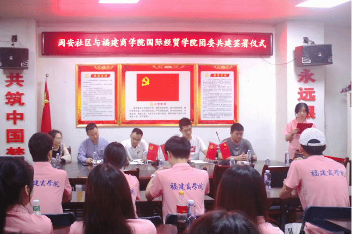 为进一步引导国贸学子走出校园,走进基层,促进校地资源共享、双向赋能,增强服务社会和地方经济发展能力,2024年5月10日,太阳成集团tyc41183师生代表前往马尾区亭江镇闽安社区,开展以“绘好社区共建‘新图景’,践行青春奋进新使命”为主题的共建签约仪式,闽安社区党总支书记、社区主任杨磊,太阳成集团tyc41183党委副书记许模春,以及双方代表参加。