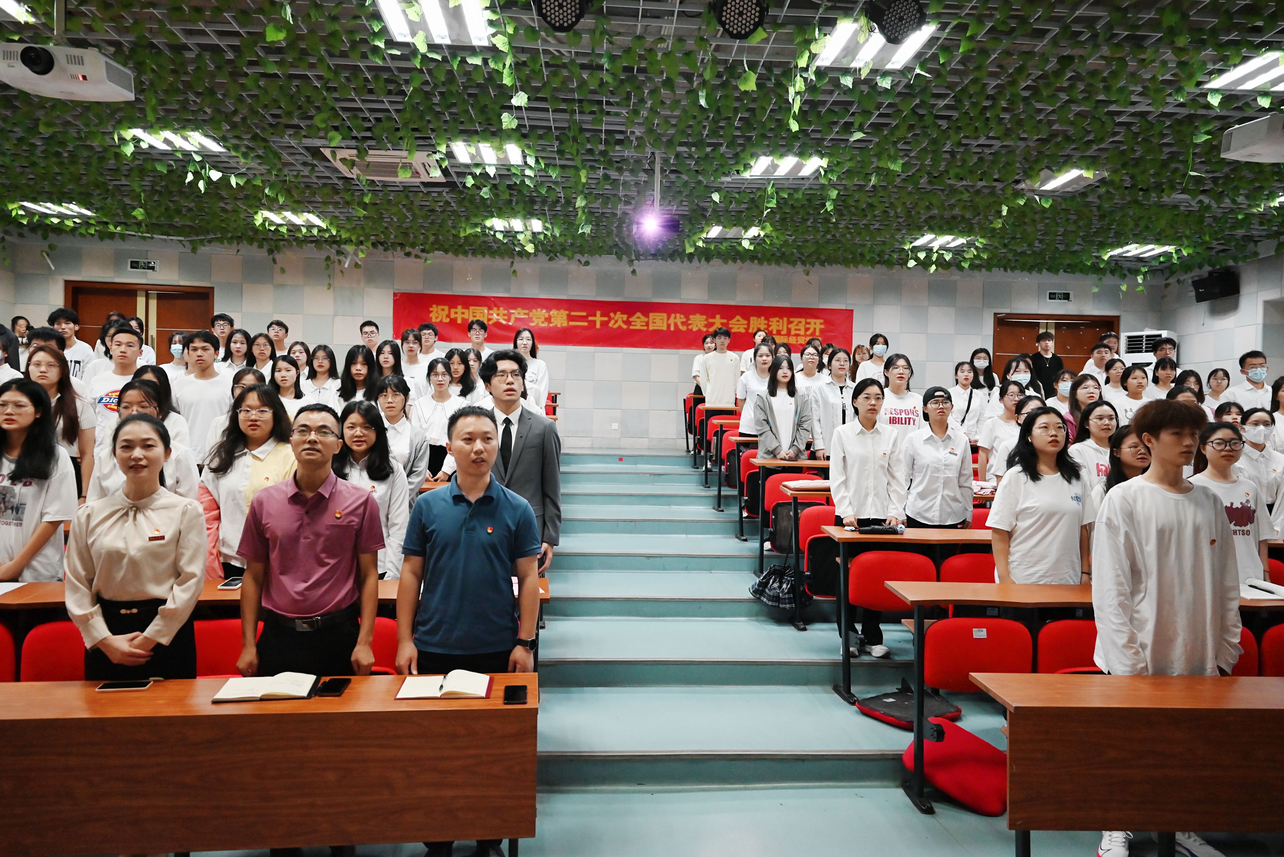 10月16日,中国共产党第二十次全国代表大会在北京隆重召开。太阳成集团tyc41183党政班子成员、各党支部师生党员、入党积极分子、学院习近平新时代中国特色社会主义思想读书社成员等400余人集中收听收看党的二十大开幕会盛况。