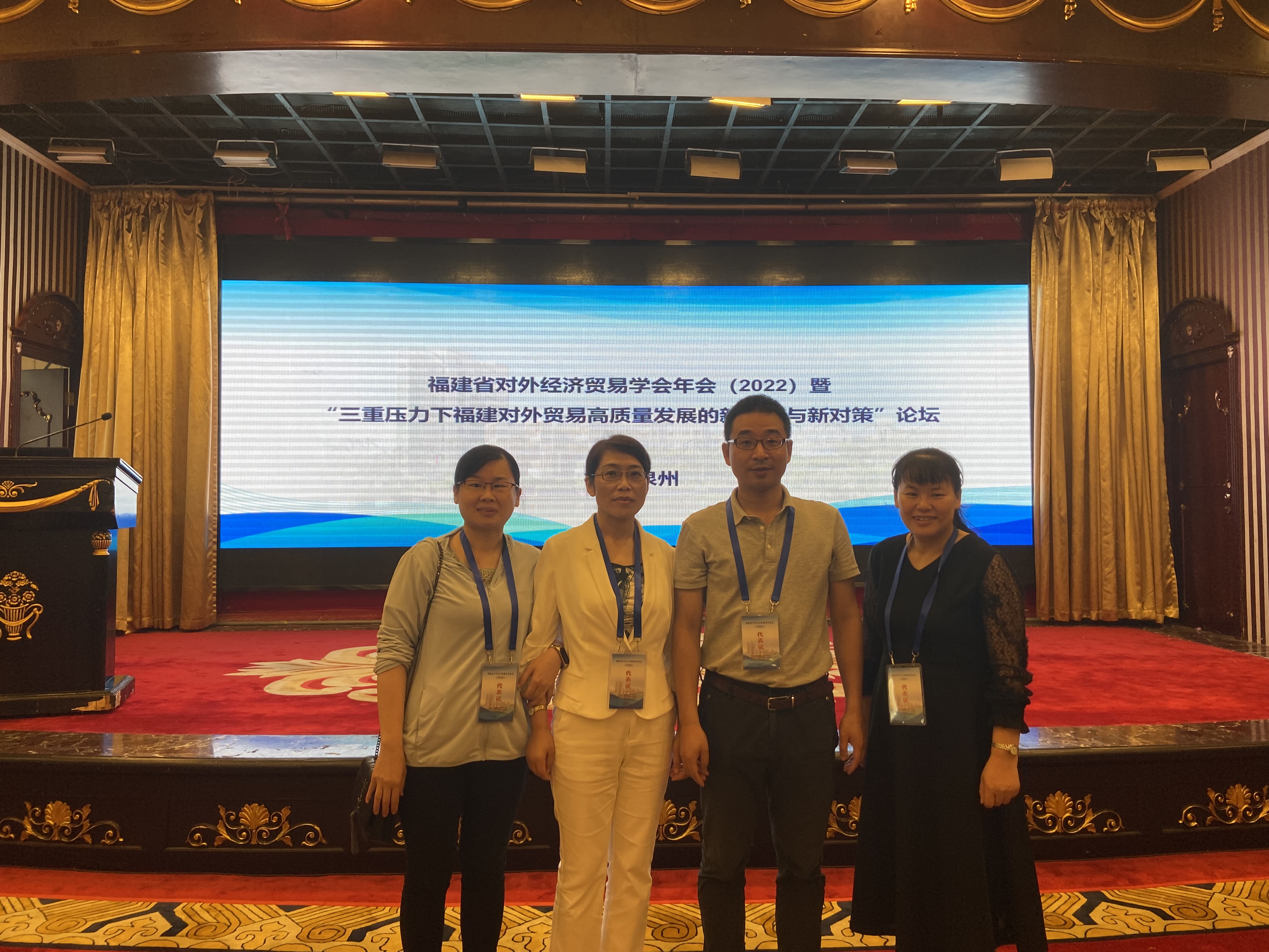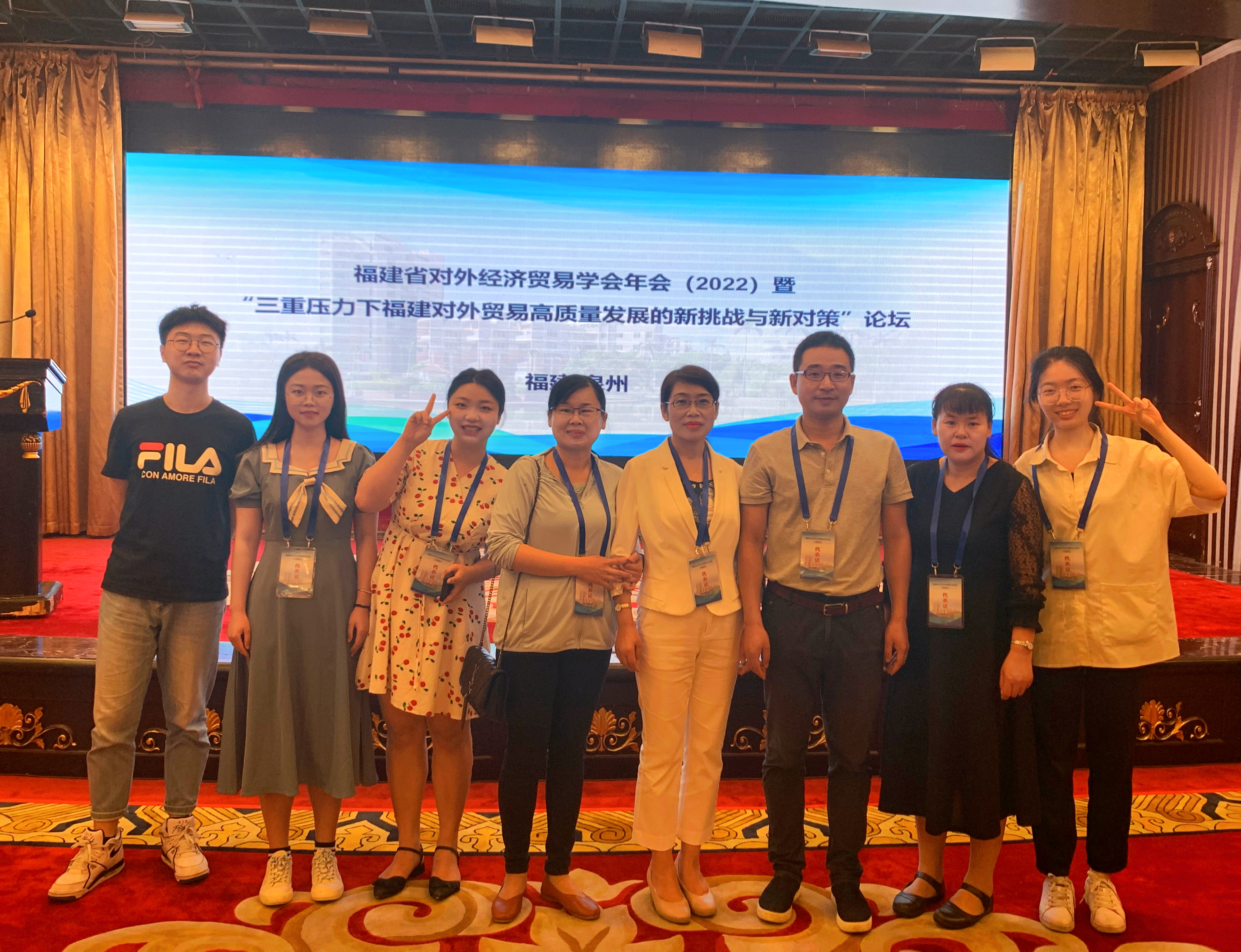 2022年6月19日,太阳成集团tyc41183院长张美涛一行参加了福建省对外经济贸易学会2022年年会暨“三重压力下福建对外贸易高质量发展的新挑战与新对策”论坛。本次学术论坛由福建省对外经济与贸易学会主办,华侨大学经济与金融学院承办,福建省泉州市中太进出口有限公司、福建泉工股份有限公司协办,来自省内研究机构、高等院校、民营企业等单位的各位专家学者共百余人出席本次会议。