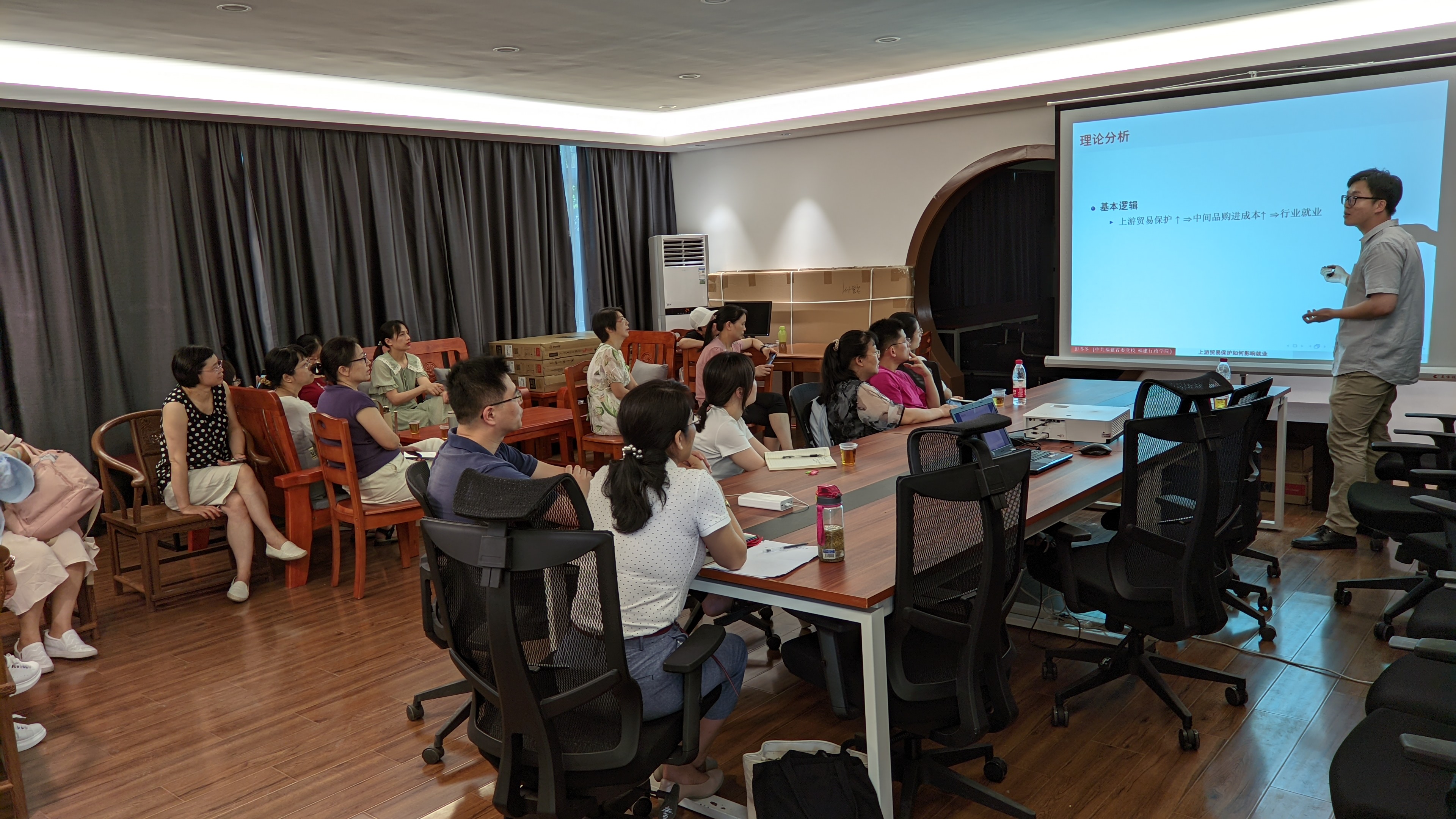 中共福建省委党校 福建行政学院彭冬冬(博士/副教授)担任主讲嘉宾,分享了主题为“上游贸易保护如何影响就业”的学术研究。彭博士从写作动机、理论分析、实证检验及基本结论四个方面展开论述,通过理论模型推导、计量模型选取,变量与数据的分析、检验,阐述了上游贸易保护对就业显著的抑制作用,以及提高中间品购进成本是抑制作用发挥的重要渠道等研究结果,给我们展示了一个典型、标准的现代国际贸易与经济学的研究范式。