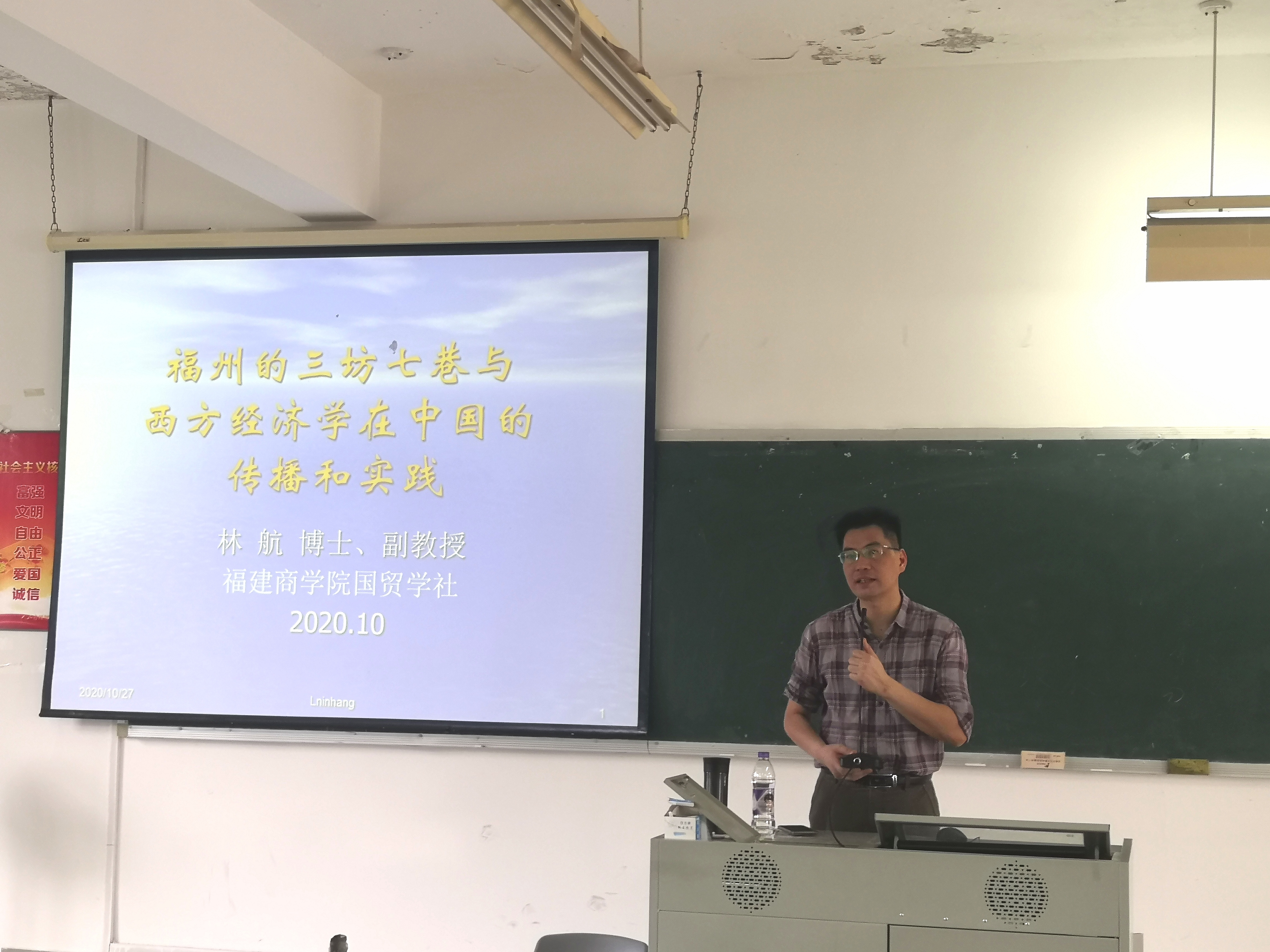 10月27日下午,由太阳成集团tyc41183国贸学社举办的“太阳成集团tyc41183博士教师系列讲座”之首期讲座—“福州的三坊七巷与西方经济学在中国的传播与实践”在远志楼T3开展。我院博士林航副教授为主讲人,国贸学生全体社员、相关师生参加讲座。