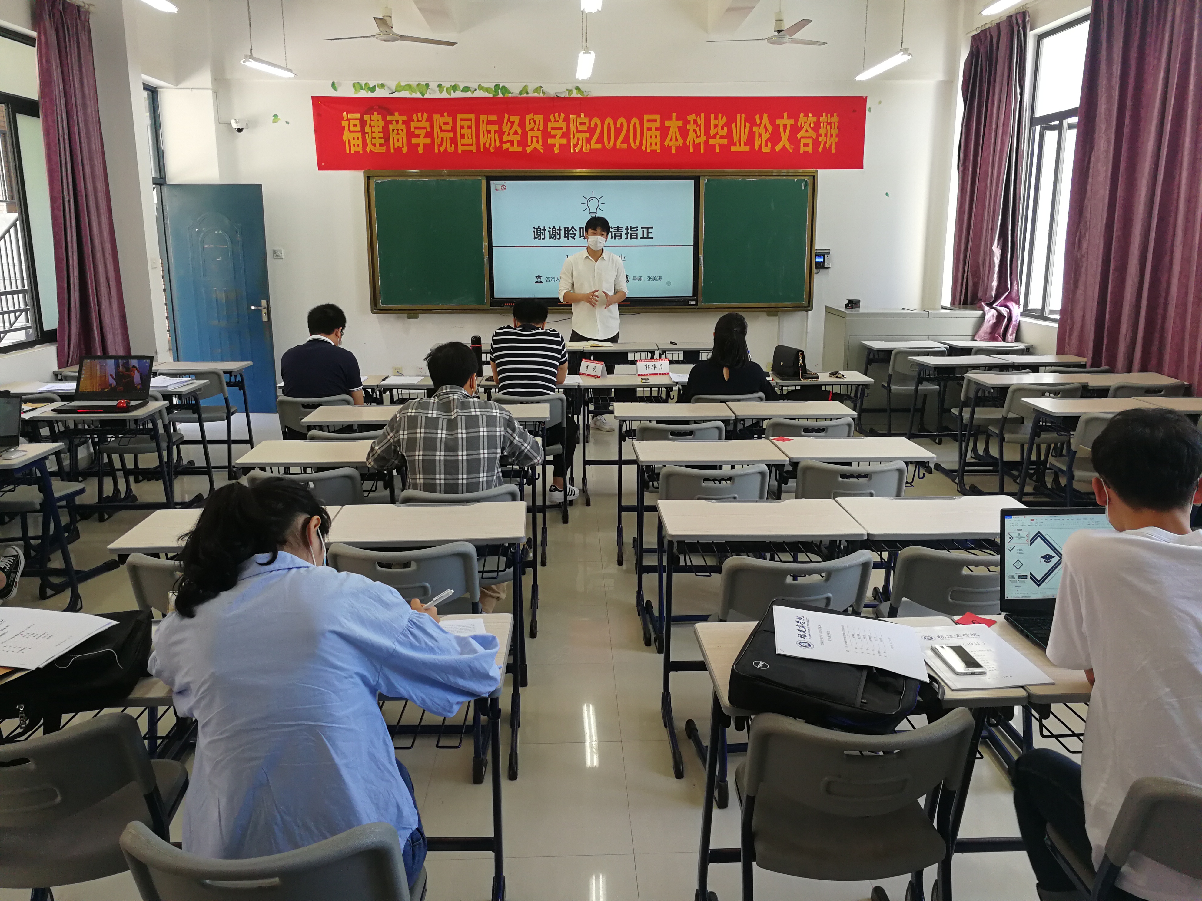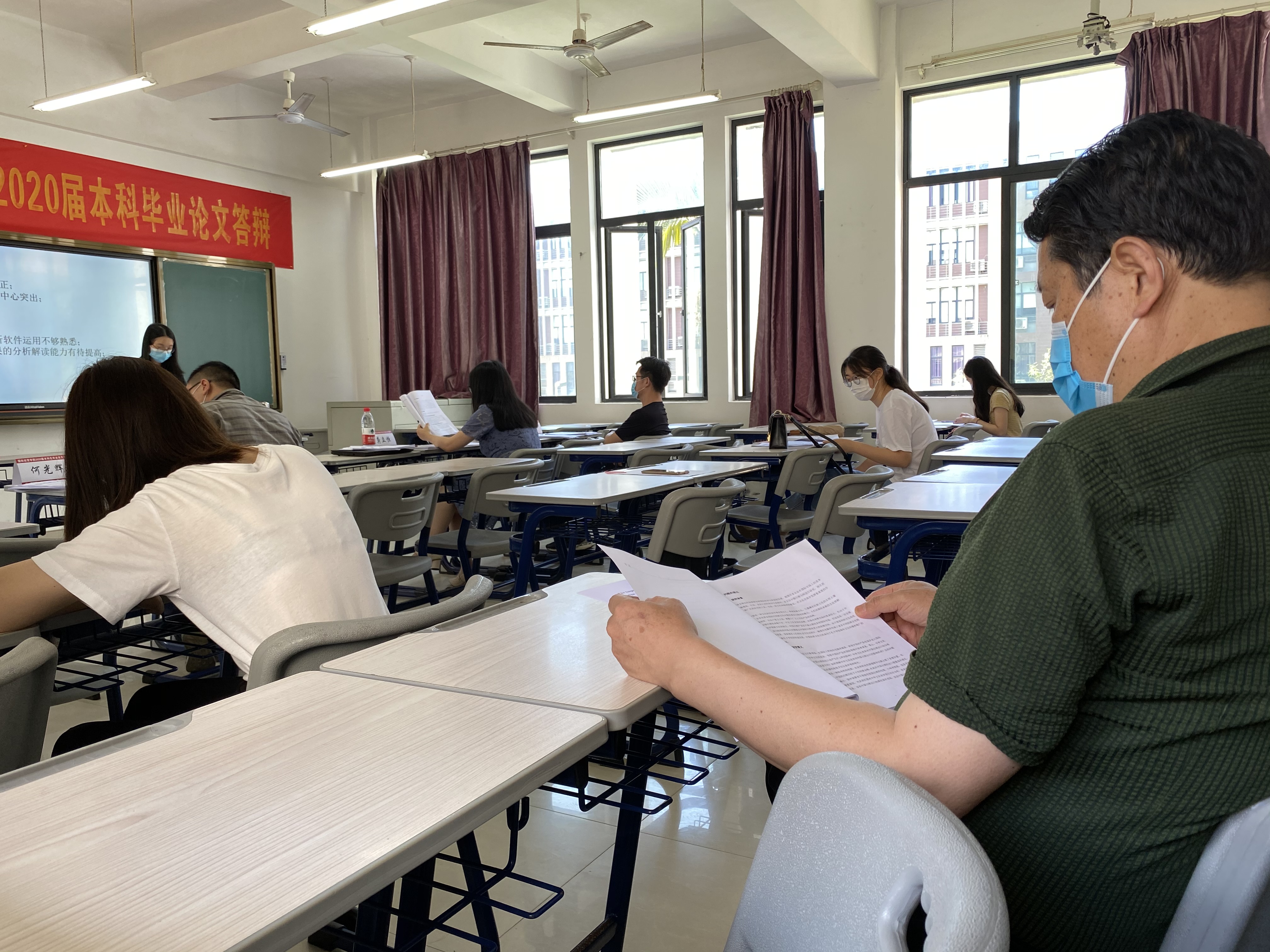 学院高度重视毕业论文答辩工作,积极落实学校关于疫情防控期间毕业论文答辩工作的各项要求,严谨制定实施方案,确保教室消杀、有序测量体温、学生聚集人数控制到位,坚持晨午晚测温制度,全体师生体温正常;于答辩前组织答辩教师、答辩秘书及相关工作人员进行培训;由学院领导组成巡查组,全程对答辩工作进行督导。整个答辩过程稳定有序进行,论文答辩会取得圆满成功。