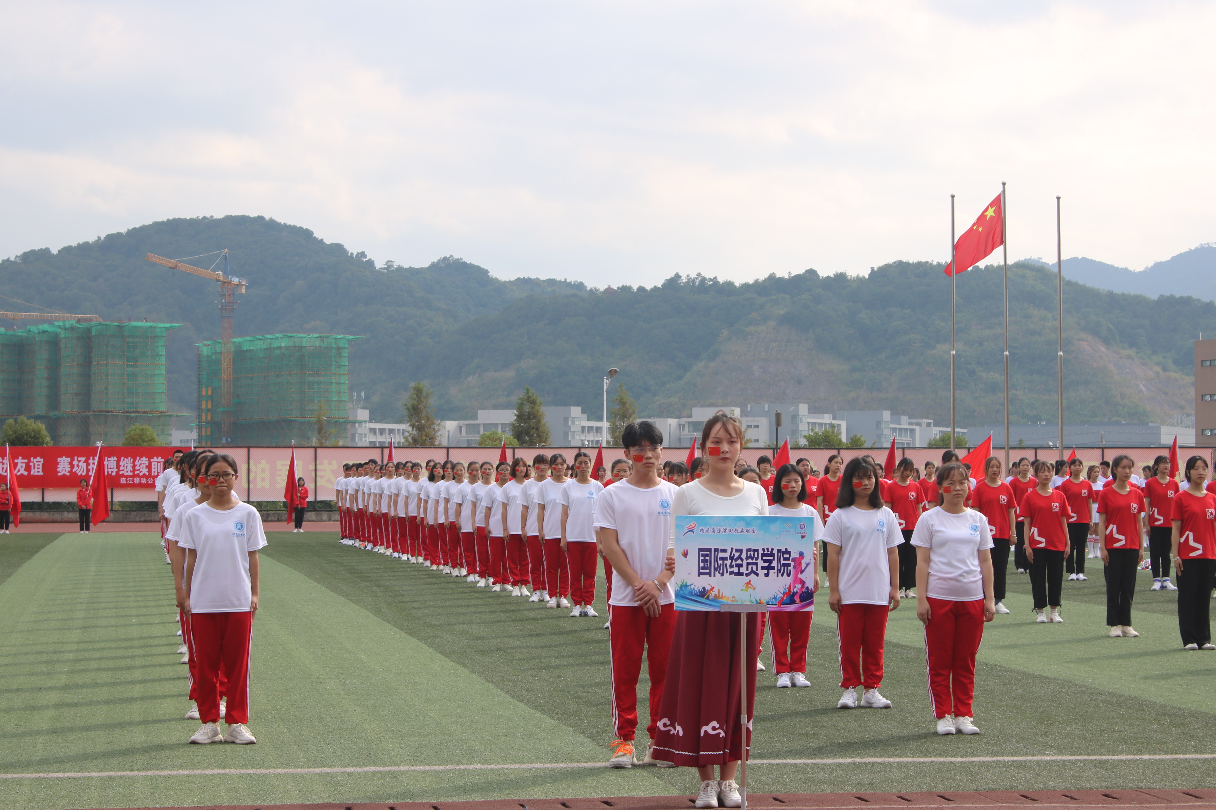 我院入场式表演伴随着《歌唱祖国》雄壮的歌声,表达了国贸学子对祖国鲜艳五星红旗的拳拳之心,献上国贸学子对新中国七十华诞的祝福。赛场上,46名运动员秉持着更快、更高、更强的奥林匹克精神,奋力拼搏;场外观众齐声呐喊,为运动员们加油鼓劲;志愿者们辛勤付出,他们都是运动会上靓丽的风景。