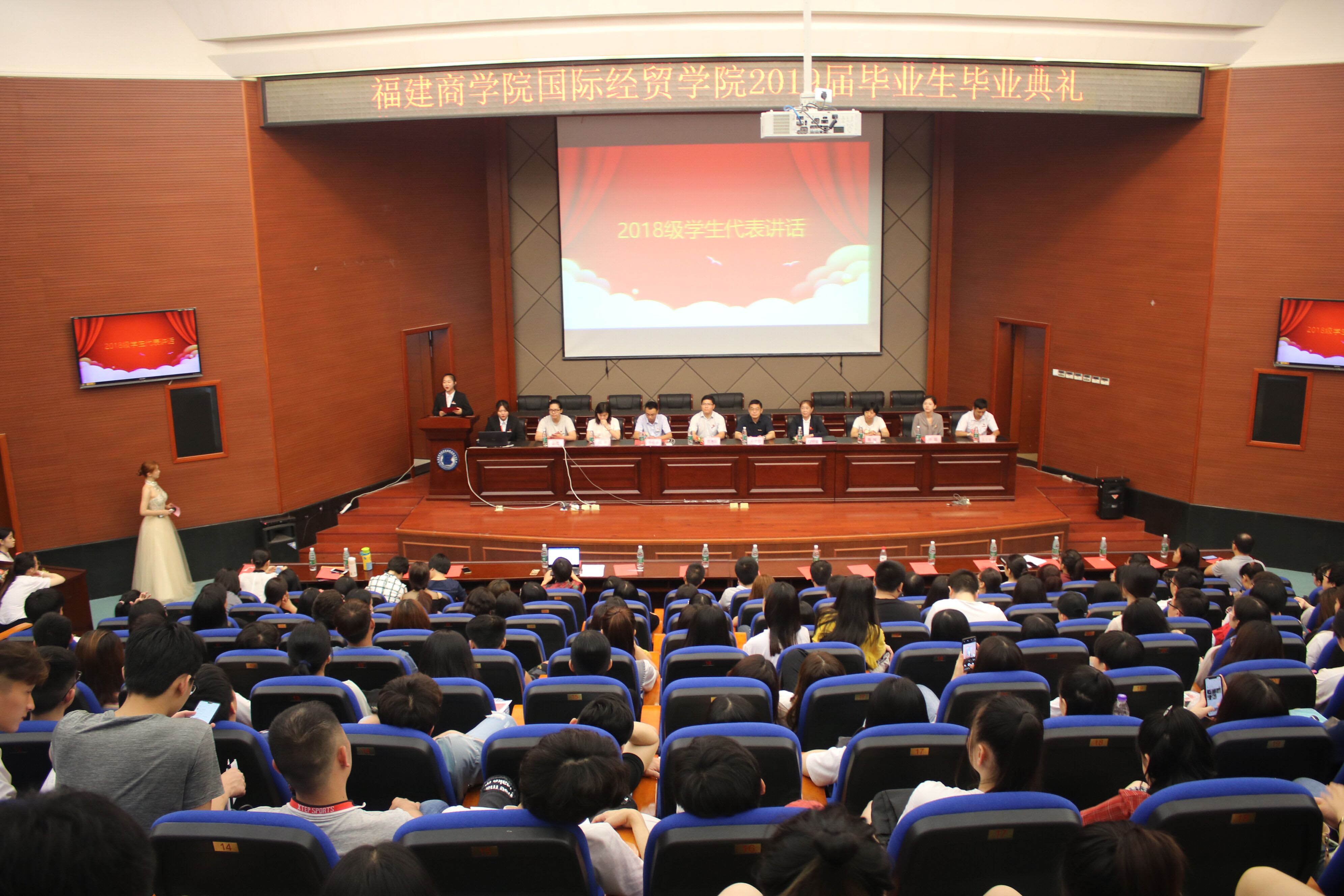 典礼在雄壮的国歌中正式开始。典礼上,校党委吴访益副书记和国贸学院领导们为2019届优秀毕业生颁发获奖证书,为2019毕业生颁发毕业证书。2019届毕业生胡立芳代表全体毕业生感谢母校的培育之恩;2018级学生金杨倩代表全体在校生祝福学长学姐前程似锦;教师代表郭华月以“做最好的自己”为题为全体毕业生上生动的一课;院长庄惠明教授在毕业致辞时向全体毕业生们致以最热烈的祝贺,同时提出三点希望,希望毕业生们在今后的日子里,抬头有清晰的远方,低头有坚定的脚步,回头有一路的故事。