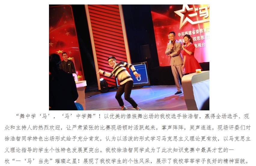 经贸系学生徐浩智在省高校大学生学习马克思主义理论“一‘马’当先”知识竞赛中鼓舞人心