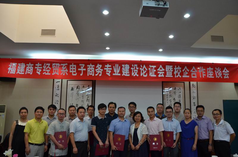 为进一步明确电子商务专专业人才培养目标,2014年9月21日上午,我系在湖前校区校会议室举行2014年电子商务专业建设论证会暨校企合作座谈会。我校副校长吴贵明教授、校教务处处长陈增明教授、校校企合作与实训处处长刘莉萍副教授出席了论证会。应邀参加的校外专家有来自福建省商务厅、福建师范大学、福建众事达网络科技有限公司、淘宝大学等单位企业的共计11位专家学者。经济贸易系主任庄惠明、系副书记徐晓旭、电子商务专业负责人陈柏良、电子商务专业教师李民、林桓、系教学秘书吴桂苹参加了论证会。
