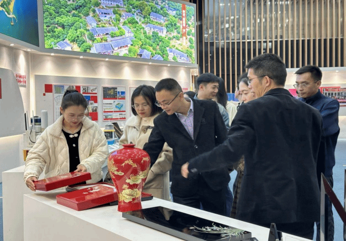 讲解员为学院老师们与学生代表介绍闽江学院发展历程