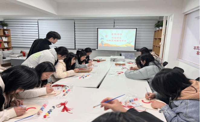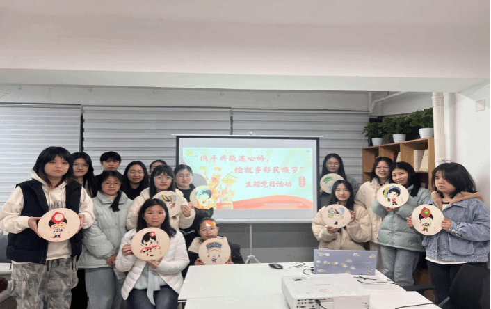 支部党员与团支部代表彩绘民族服饰
