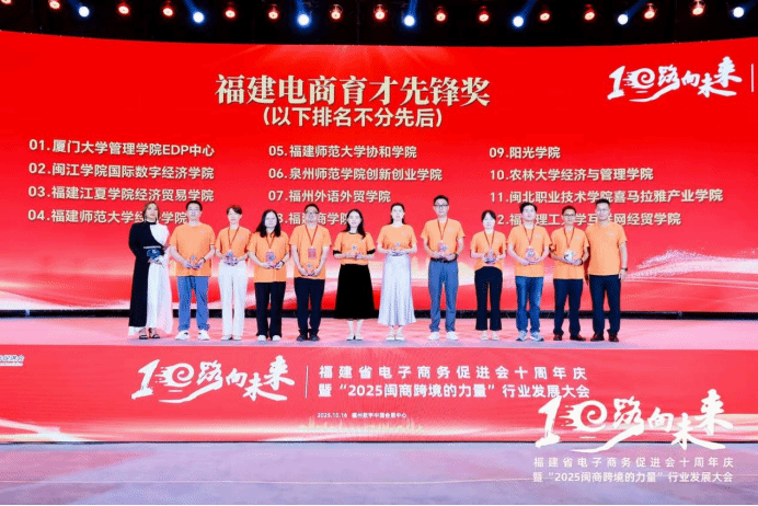 大会圆桌分享环节中,我院2018级电子商务专业毕业生刘家彪作为嘉宾分享了他的创业经历与心得。刘家彪在校期间敏锐捕捉跨境电商机遇,勇于实践、大胆创业,毕业后仅两三年迅速成长为TikTok电商领域的头部卖家,目前月销售额达三百万元,成为行业内备受瞩目的青年创业者。他的成长历程生动展现了我校在应用型人才培养和创新创业教育方面的扎实成果,我校荣获“福建电商育才先锋奖”。